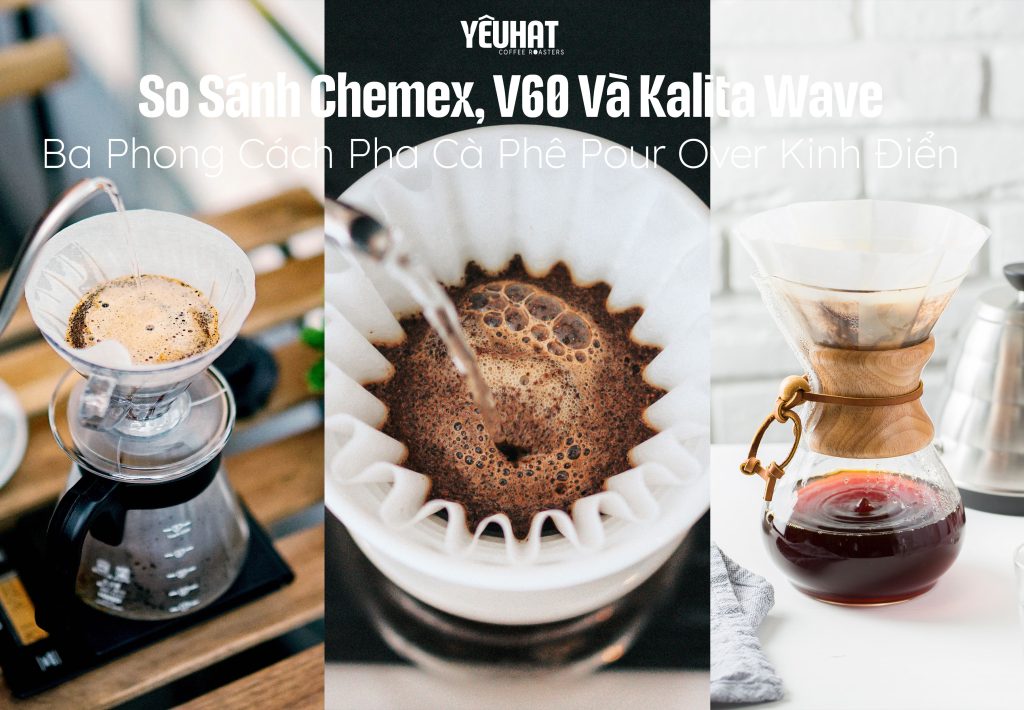 Ba trong số những biểu tượng bất hủ của pha cà phê thủ công — Chemex, V60 và Kalita Wave —